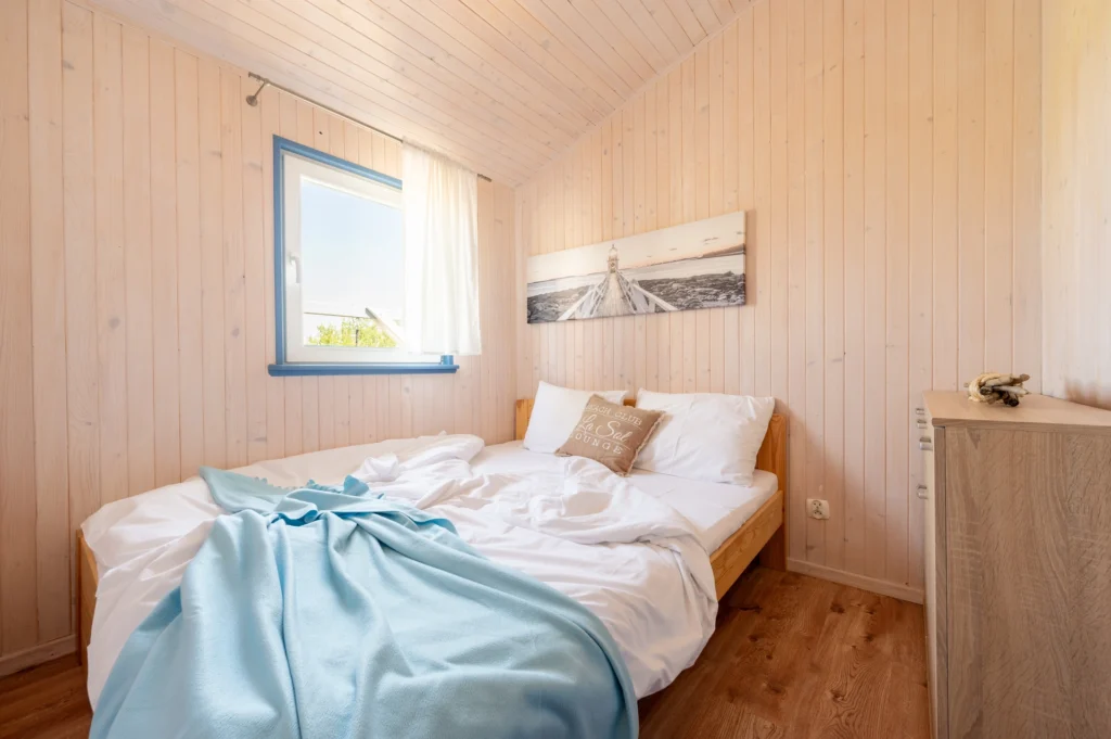 • Taras 14m2 wraz z ławostołem, sprzęt plażowy (parawan, leżaki) – tarasy są również wyposażone w plandeki ochraniające od deszczu i wiatru.